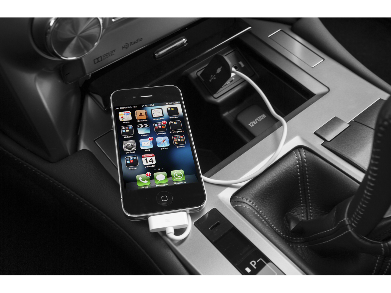 - Radio: AM/FM Lexus Premium Audio -inc: 8" touch screen, 9 speakers, in-dash single CD player w/Automatic Sound Levelizer (ASL), MP3/WMA capability, cache radio, integrated SiriusXM satellite radio receiver (complimentary 90-day trial subscription included), HD Radio real-time traffic and weather, 2 USB ports w/iPod connectivity, Bluetooth® hands free phone w/phonebook download capabilites, music streaming and Siri Eyes Free mode w/select and play music from iTunes, call contacts, hear and compose text messages and emails, hear sports scores, stock information and weather, use maps and get directions (turn-by-turn navigation can be requested through Siri and Apple maps) map displayed on phone screen, perform POI searches, requested search information read back to driver over vehicle audio system, read notifications and read calendar information, add reminders, calendar appointments and notes